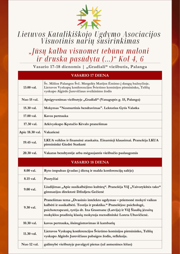 LKUA visuotinis narių susirinkimas vasario 17-18 d. 2026-01-21 „Jūsų kalba visuomet tebūna maloni ir druska pasūdyta (…)“ Kol 4, 6 Registracija į susirinkimą vykdoma Semiplius sistemoje.